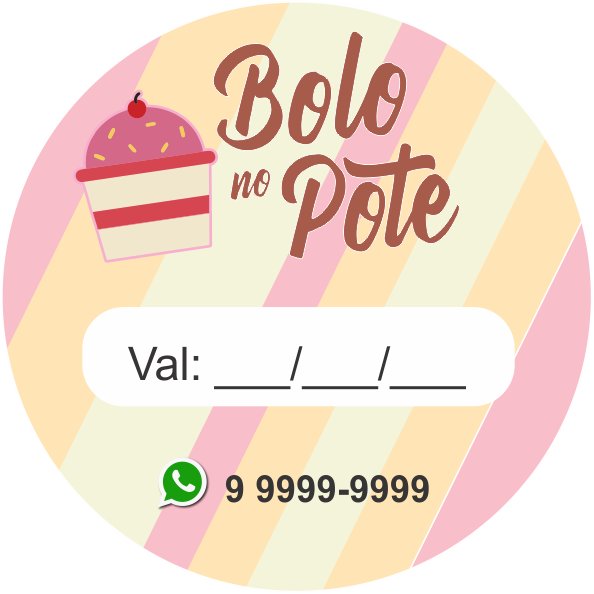 Adesivos - Rótulos Bolo de Pote - Tamanho 4x4 - Redondo c/ 120 Unidades (Feito sob encomenda 5 dias úteis para produção + Frete a ser definido pelo COMPRADOR)